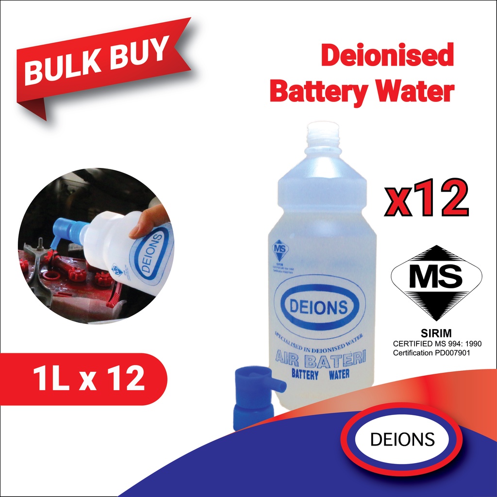 Bulk Buy Deions Deionised Battery Water 1l X 12 100 Pure Clean Water For Battery Or Cosmetic Shopee Malaysia